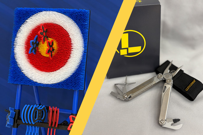 Get a bullseye in our ax throwing game to enter our daily Leatherman drawing or earn other small prizes for getting on the board!
